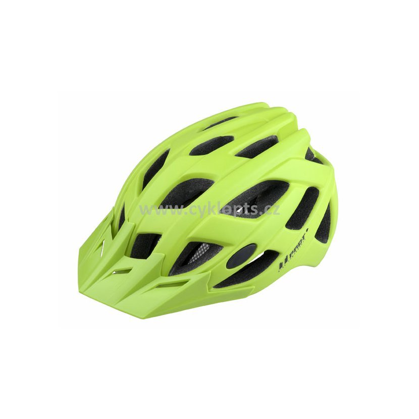 Sportovní přilba s odnímatelným štítkem a síťkou proti hmyzu. Konstrukce In mold, nastavení obvodu pomocí kolečka, hmotnost 270g, 25 větracích otvorů,odrazové prvky